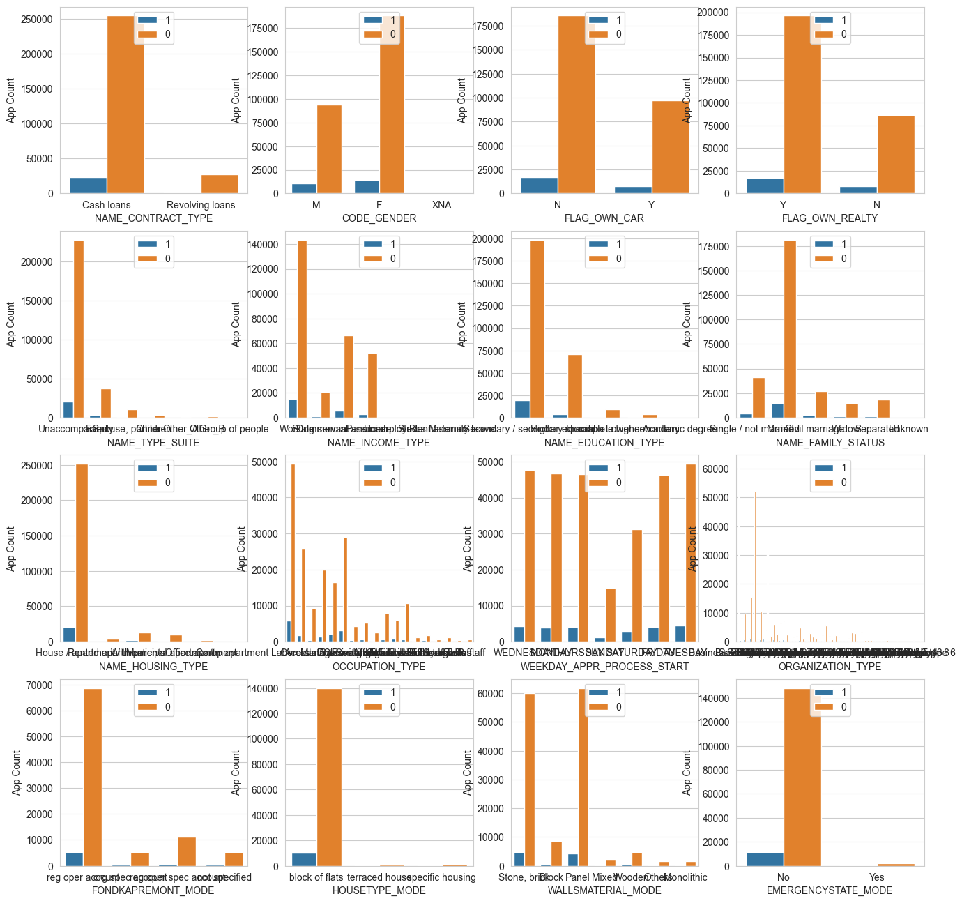 ['NAME_CONTRACT_TYPE', 'CODE_GENDER', 'FLAG_OWN_CAR', 'FLAG_OWN_REALTY', 'NAME_TYPE_SUITE', 'NAME_INCOME_TYPE', 'NAME_EDUCATION_TYPE', 'NAME_FAMILY_STATUS', 'NAME_HOUSING_TYPE', 'OCCUPATION_TYPE', 'WEEKDAY_APPR_PROCESS_START', 'ORGANIZATION_TYPE', 'FONDKAPREMONT_MODE', 'HOUSETYPE_MODE', 'WALLSMATERIAL_MODE', 'EMERGENCYSTATE_MODE']