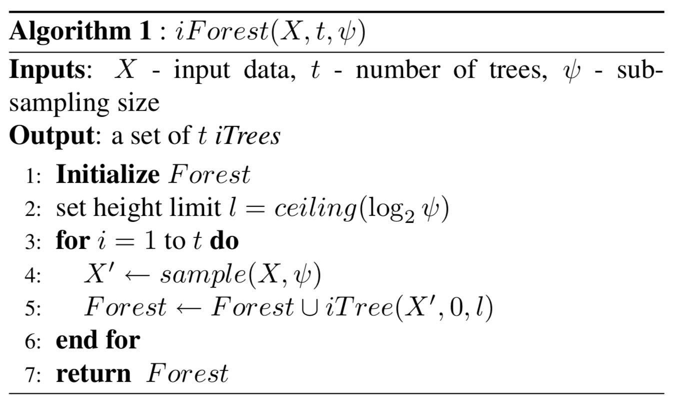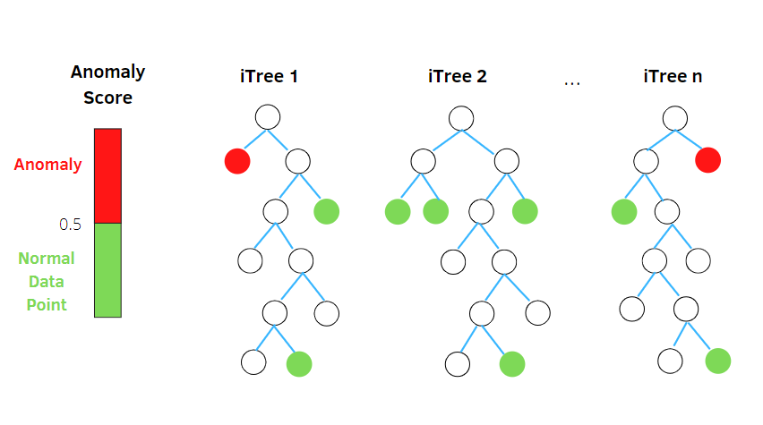 一颗 iTree 的结果往往不可信,iForest 算法通过构建多颗二叉树,整合所有树的结果,判断异常值。