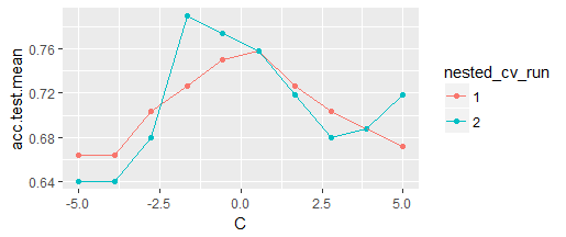 mlr支持嵌套重采样进行复杂操作,例如通过包装来调优和特征选择等。为了获得良好的泛化性能估计和避免数据泄漏,建议使用外部(用于调优/特征选择)和内部(对于基本模型)重采样过程。